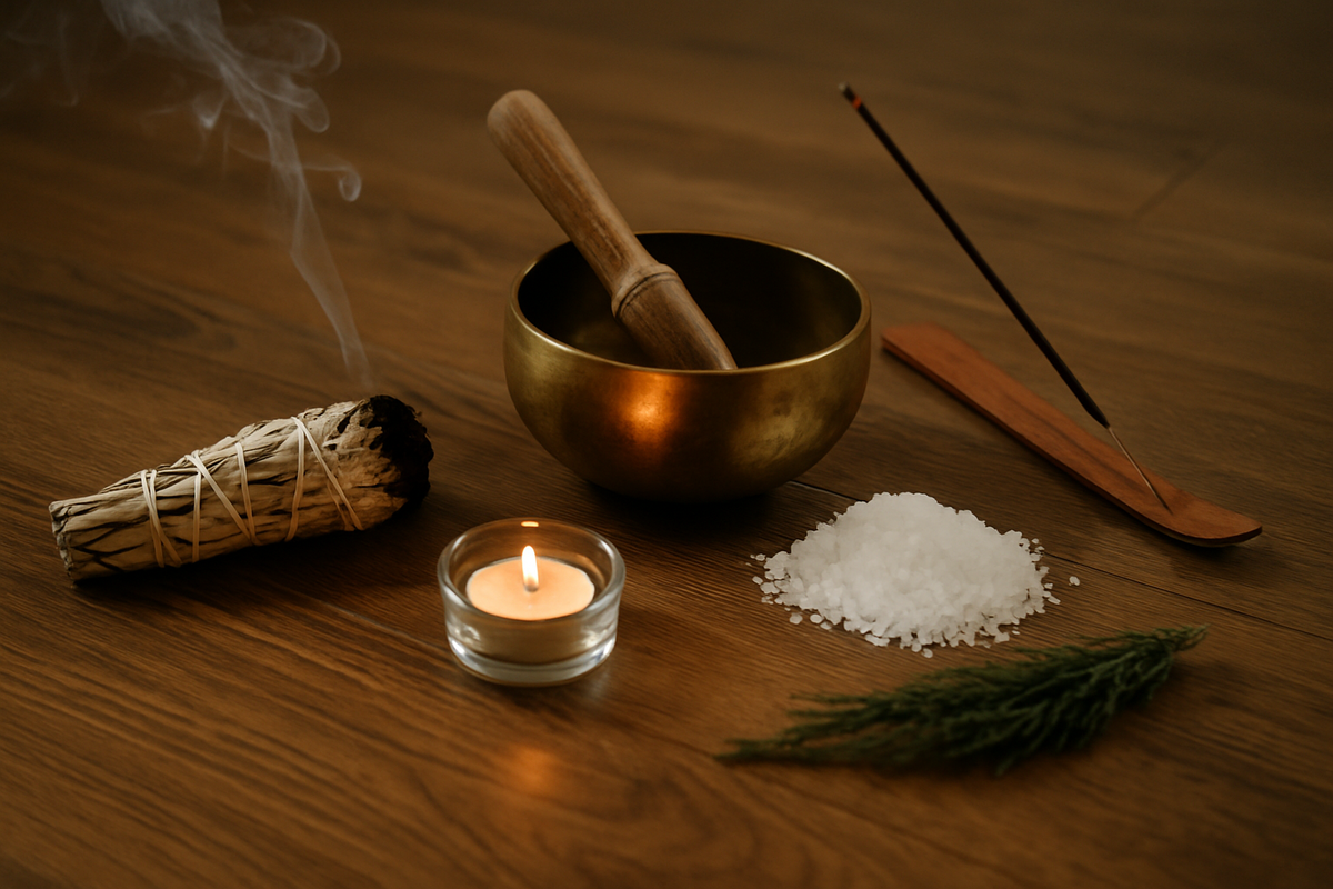 Vous pouvez tout à fait commencer par des pratiques simples chez vous : purification par le sel, la sauge, ouverture des fenêtres, etc. De nombreux outils sont à votre disposition.